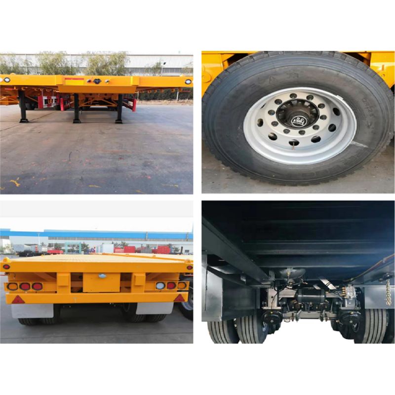 当社のフラットベッドセミトレーラーには通常 13 トンまたは 16 トンの車軸が付いています。ブレーキには220mm幅のブレーキパッドを採用し、制動性能を20%向上させました。